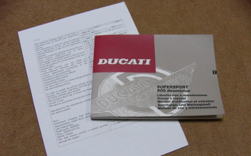 マニュアルの表記はもちろんイタリア語。英語やフランス語でも併記してありますが、日本語はありません。必要なところを辞書を駆使して訳していますが、専門的な語句も多く直訳しても無理なところもあります。購入時に付いてくる整備書ですから、ディーラー用のサービスマニュアルとは違い分解整備にまでは役立ちませんが、通常のメンテには十分で、サスの調整値など参考になるところ多数です。全訳を目指しています。