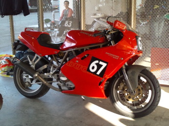 さてレースは進み、K君は順調に周回を重ね他のチームがライダー交替やピットストップをするうちに混戦模様になってきました。30分ほど経過したころでしょうか、なかなかbP2がホームストレートに帰ってきません。これはなにかあったなと、こちらも交代の準備を始めるとようやく帰ってきました。やはり転倒したそうです。K君によると、走っているうちにサスがどうにもおさまらなくなってきて、しょうがなく転倒したとのこと。そういう理由だからでしょうか、レーススタッフもそのまま走っていいし、車両交換してもいいとのことでしたので、K君の薦めで再度車両交換する事にしました。