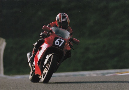 さあ、私の走りですが、とにかくがむしゃらでした。ですが、最初は前にも後ろにも他の車両がいなかったので、ペースが全然わかりません。いったい速いのか?遅いのか?そうするうちに速いライダーが迫ってきましたので、チャンスとばかりに抜かれた後を追いかけて行きました。やはり速いライダーの後ろに着くと勉強になります。そうすると離されながらもペースは上がり、やがて勝てるライダーにも追いつくいてきました。終わり際には一度抜かれたライダーにも徐々に追いつくことができ、得意の最終コーナーで「ここだ!」と頑張ったら、今度はこのマシンまでリヤサスが変な挙動をはじめ、危うく転倒しそうになり、逆に離されてしまいました。その他にもレース後半は何度か危ういスリップ等もありましたが何とか転倒せずに走り抜きゴール。いつもよりあっというまでした。